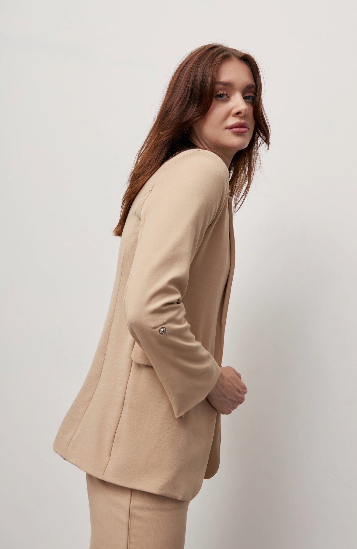 De lino stretch con forro del mismo tejido, este blazer de silueta suelta respira frescura y elegancia relajada. Los reguladores en las mangas lo vuelven aún más versátil. Perfecto para combinar con el pantalón Alma o reinventar cualquier look del clóset.