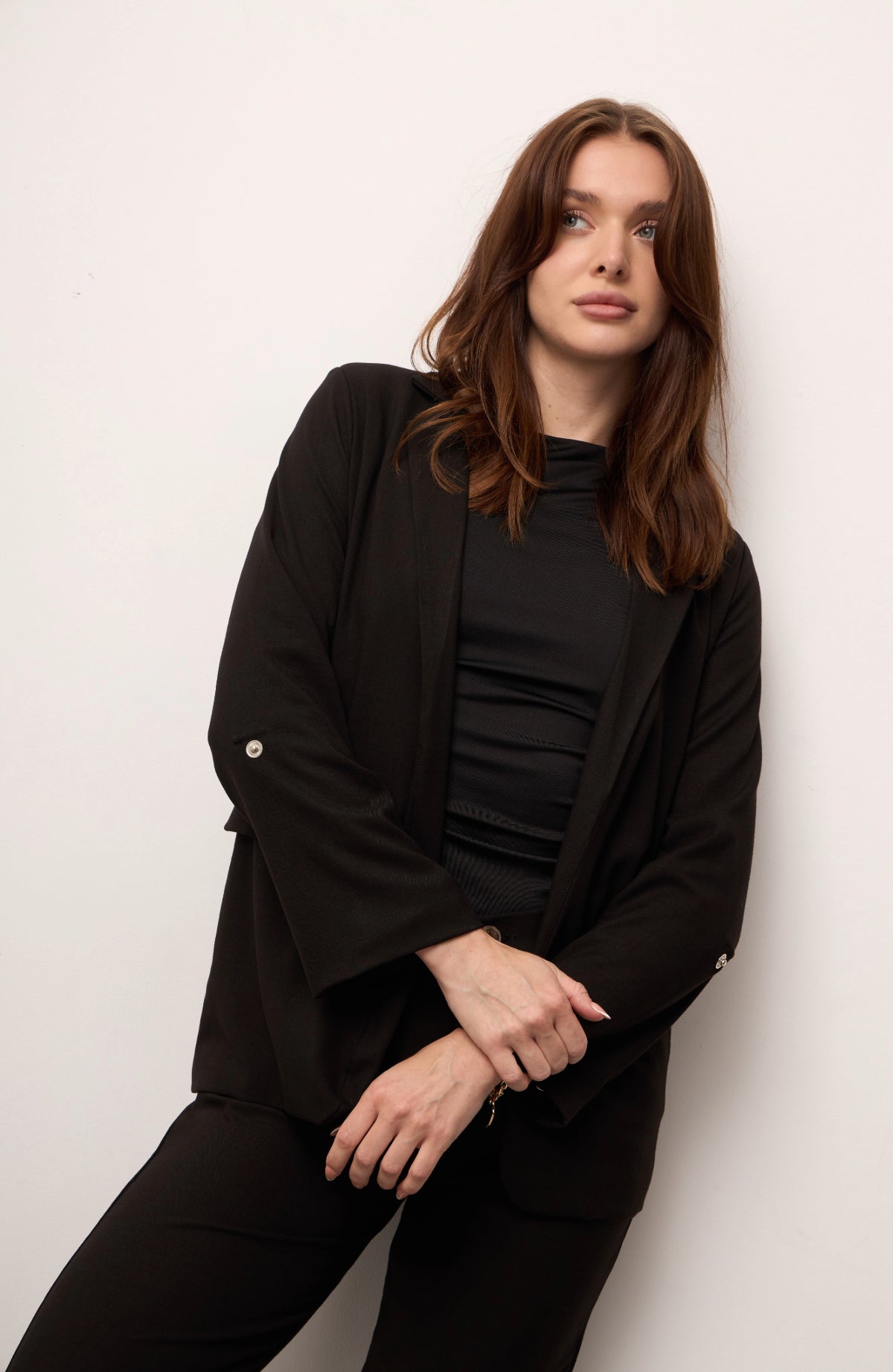 De lino stretch con forro del mismo tejido, este blazer de silueta suelta respira frescura y elegancia relajada. Los reguladores en las mangas lo vuelven aún más versátil. Perfecto para combinar con el pantalón Alma o reinventar cualquier look del clóset.